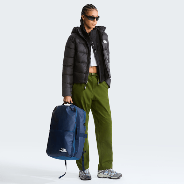 Inspired by our iconic Base Camp Voyager Duffel, this daypack is just as light and easy to use, with the same focus on travel rather than back-and-beyond expeditions. The shoulder straps and back panel are padded for long-lasting comfort when hanging around at the airport. It's got a padded laptop sleeve, two water bottle pockets, and - to avoid frustrated rummaging - there's an external zipped pocket with organisation for your passport, phone and other travel essentials. There are three padded handles that make hauling the pack a breeze and a luggage pass-through that lets you attach the pack to rolling luggage. Plus, being made from recycled materials, it's a kind choice for nature. Fill it with everything you need for the day's adventures.
