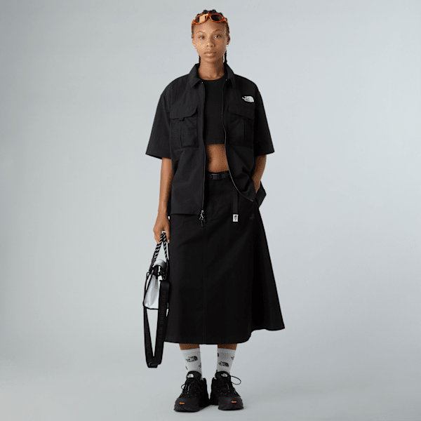 - Nouveauté de la saison, cette chemise oversize Rager 100 % nylon revisite le modèle à manches courtes dans un style technique, avec une fermeture éclair à double sens, des épaules tournées vers l’avant et une finition déperlante pour une protection accrue.